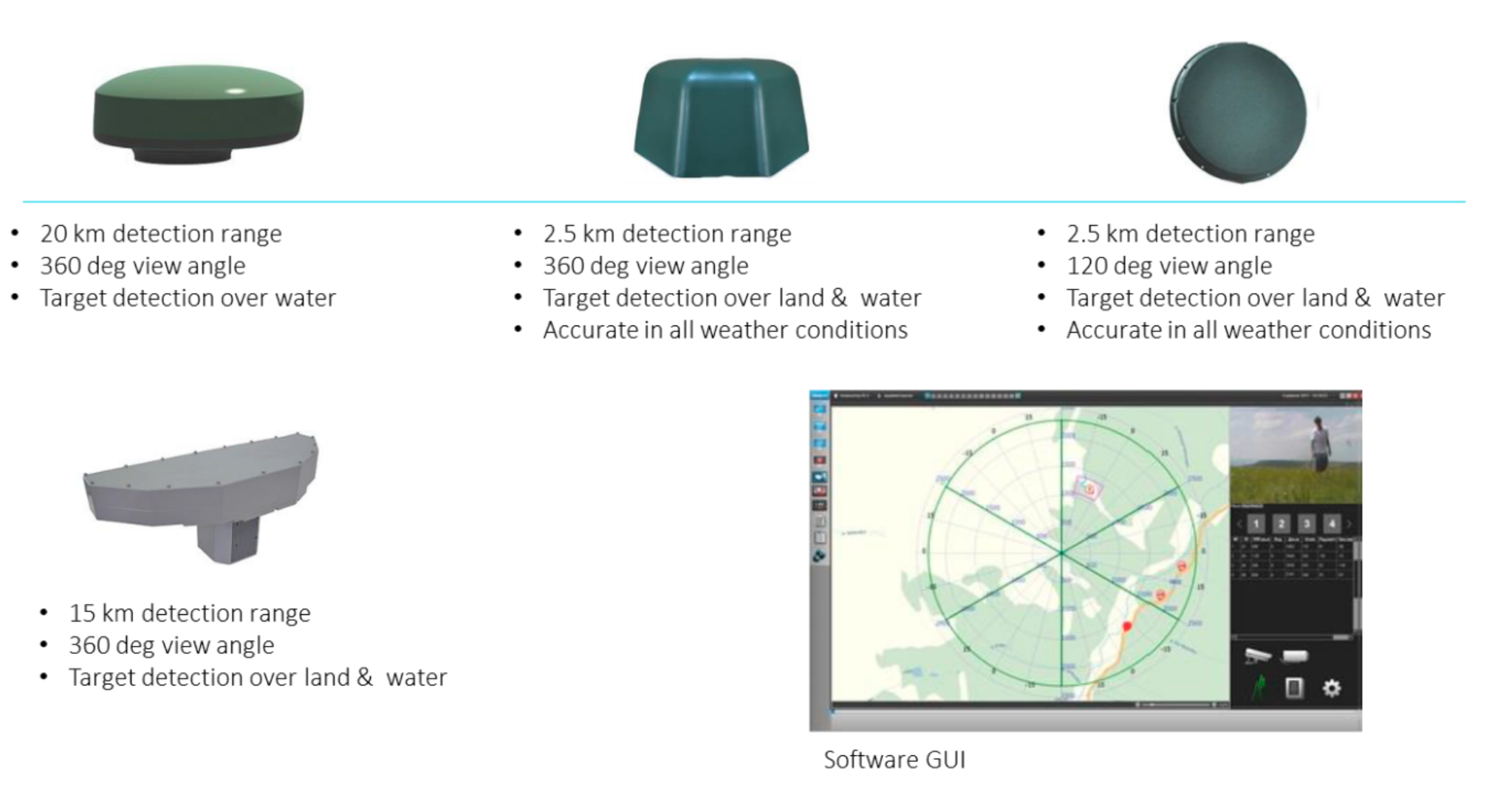 Our Radar systems are designed for harsh terrains with High MTBF and Range from 2.5 km to 20km. Fully integrated with PID – GUI and system is capable to Works on land and over water.)